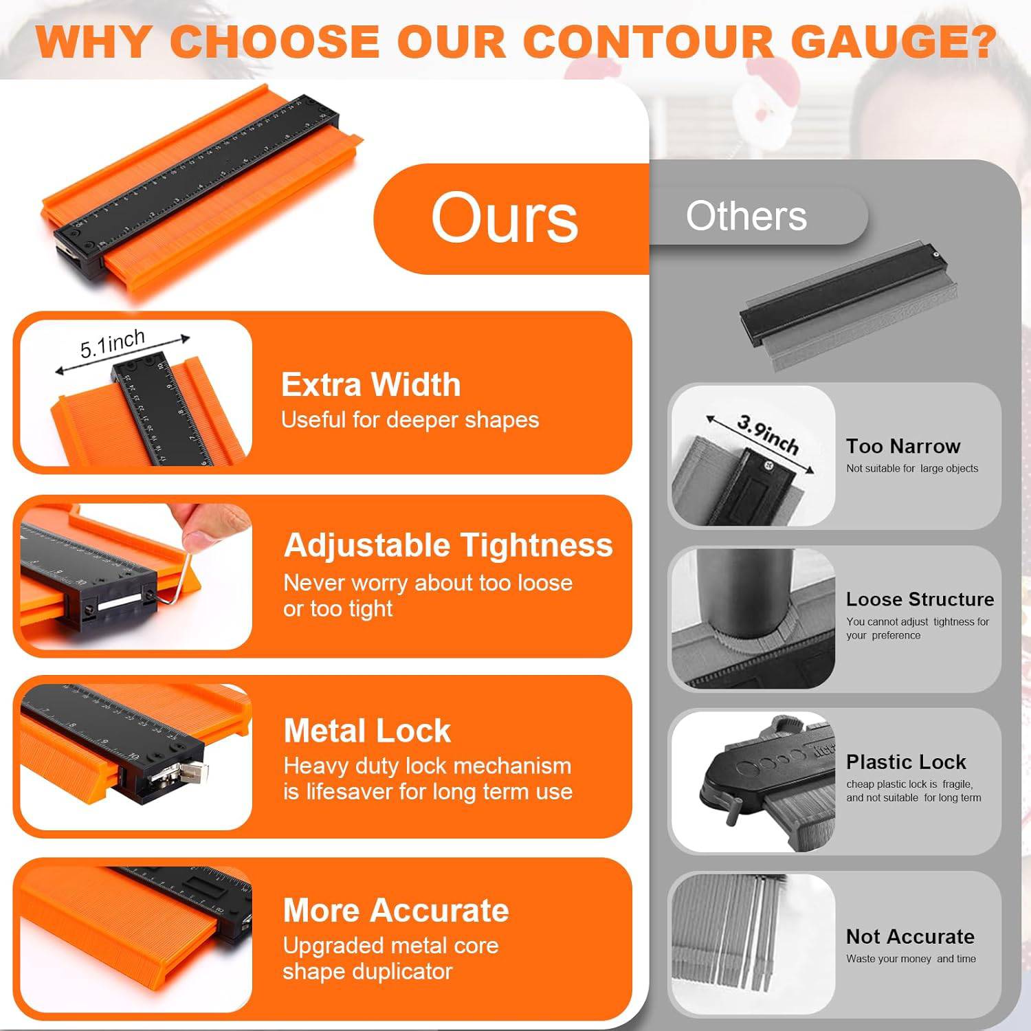 The MASTER OUTLINE GAUG makes measuring irregular shapessimple. Just press the tool against the object, and it copies theexact shape. Whether it's for tiling, flooring, or car repairs, youget precise results instantly. Plus, it locks the shape in place, soyou can easily trace it on your material without worrying aboutmistakes. No more trial and error! it's also a great gift foranyone who loves DlY projects- a perfect present for your dad,husband, or friend who enjoys building and crafting!